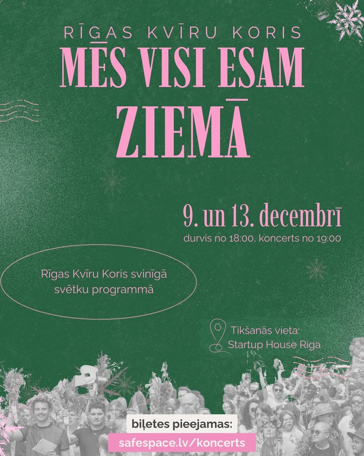 Rīgas Kvīru koris 2025. gada decembrī aicina uz diviem īpašiem Ziemassvētku koncertiem ar nosaukumu “Mēs visi esam ziemā”. Mēs ticam, ka mūzika var būt vieta, kur satiekas dažādi cilvēki – neatkarīgi no vecuma, dzimuma, rocības vai dzīves situācijas.