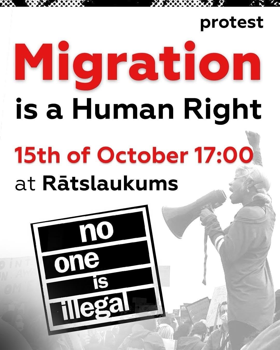 ENG:We invite you to join us on October 15 at 17:00 for the protest “Migration is a Human Right”, which will take place at Rātslaukums, in front of Rīga Dome! We want to express our concern about how right-wing politicians use migrants as a tool for political manipulation and as a source of fearmongering.
